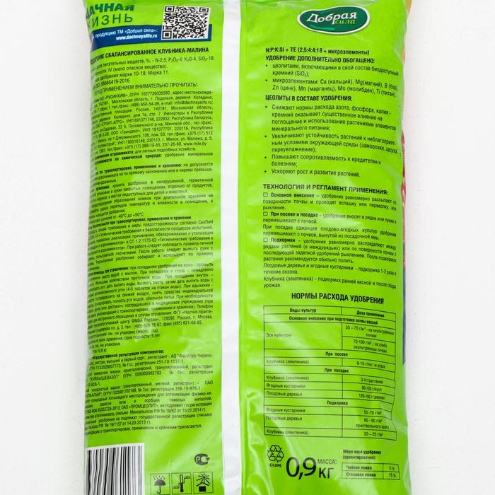 Удобрение Добрая сила клубника-малина, 0,9 кг