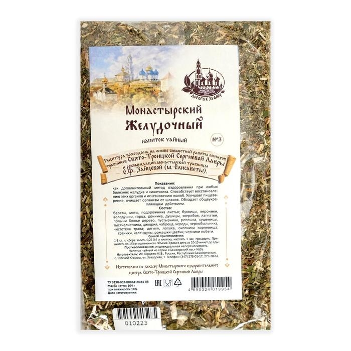 Травяной сбор «Монастырский сбор № 3», желудочный, улучшение пищеварения и очищение организма, 104 г