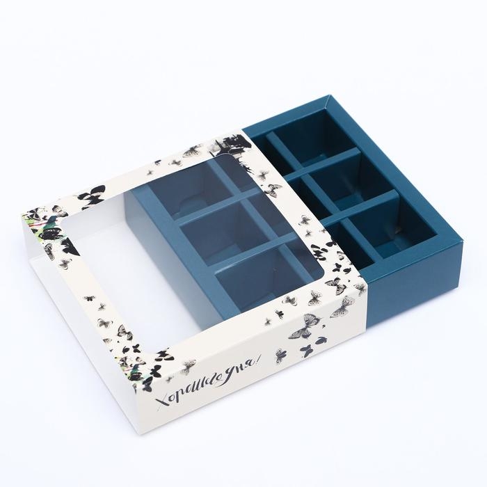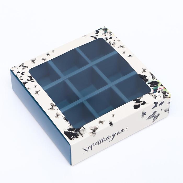 Коробка под 9 конфет с обечайкой " Хорошего дня " с окном 14,5 х 14,5 х 3,5 см
