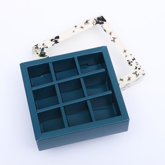 Коробка под 9 конфет с обечайкой " Главное верить в себя " с окном 14,5 х 14,5 х 3,5 см