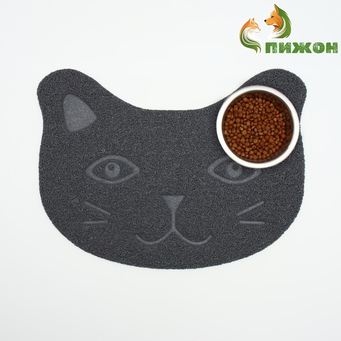 Коврик 2-в-1 под миску/туалет животных "Киса", 40 х 30 см, серый