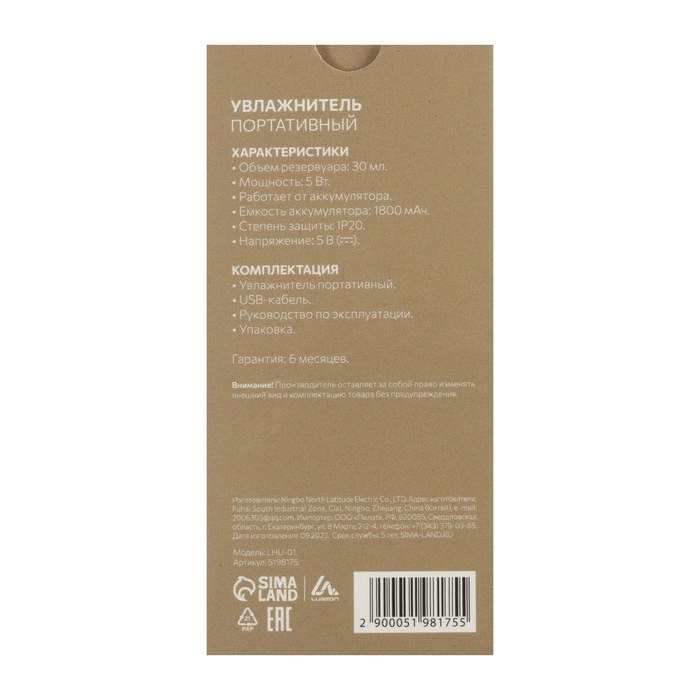 Увлажнитель Luazon LHU-01, для лица, карманный, 5 Вт, USB (в комплекте), АКБ, белый