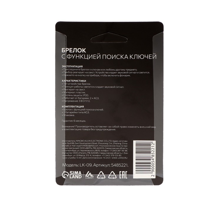 Брелок для поиска ключей LK-09 оснащён громким звуковым оповещением. Срабатывает на свист. Можно использовать для поиска вещей к которым сможете его закрепить. Имеет переключатель «ВКЛ/ВЫКЛ» но боковой стороне корпуса.