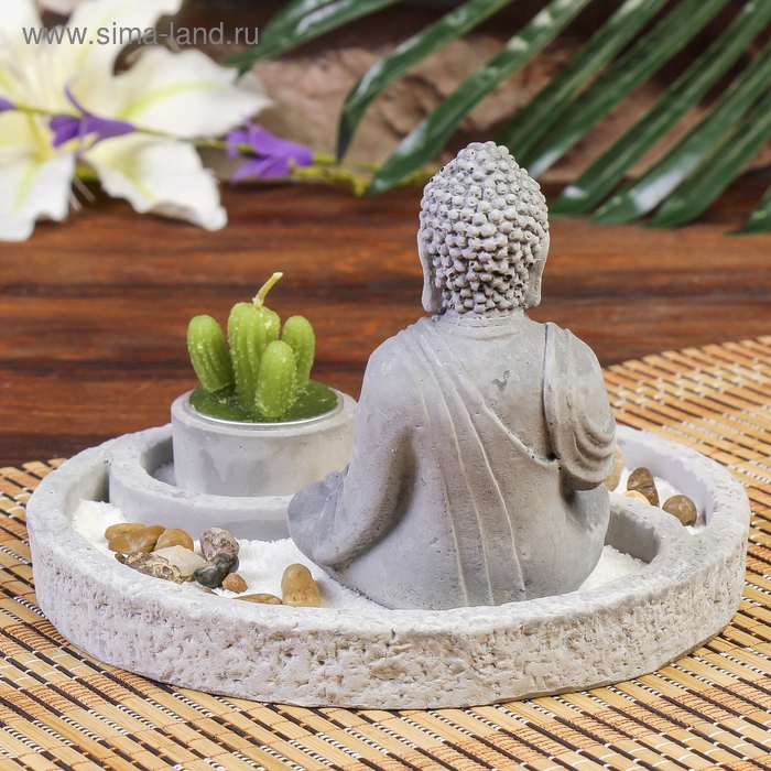 Сад камней Дзен "Будда в саду" серый, песок белый + свеча + камни 13х19х19 см