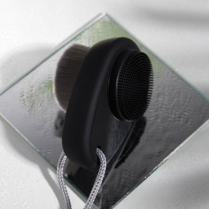 Двухсторонняя щётка для лица станет верным спутником вашего ежедневного уходового ритуала. С одной стороны щёточка имеет плотную круглую кисть, с другой – массажную поверхность из резиновой щетины.