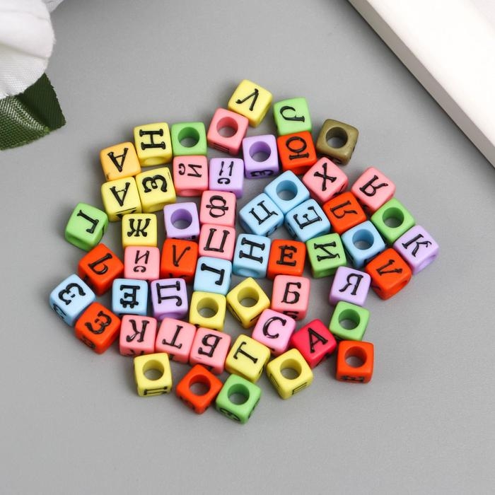 Бусины для творчества пластик "Русские буквы на кубике" цветные набор 10 гр 0,6х0,6х0,6 см