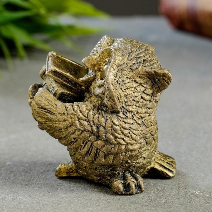 Фигура "Сова с книгами" малая состаренное золото 5х5х5см
