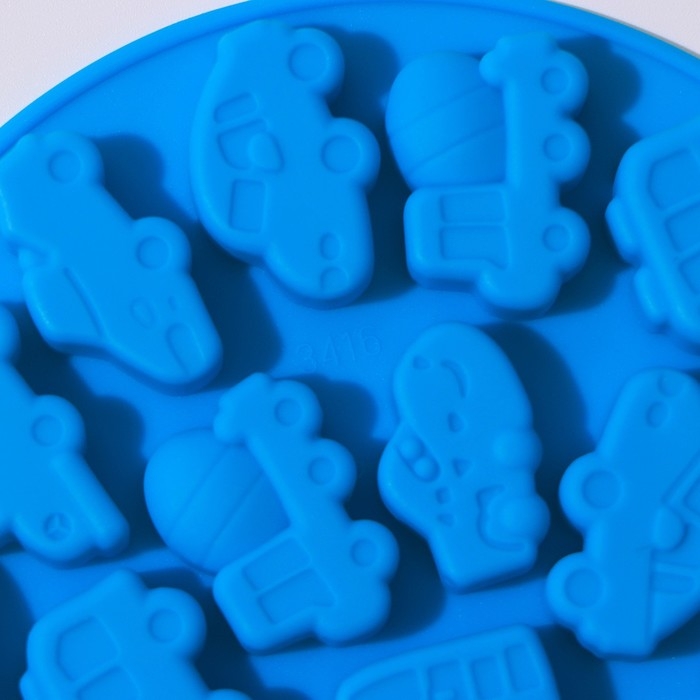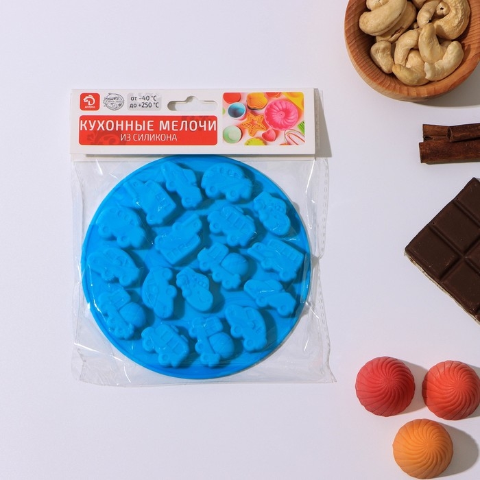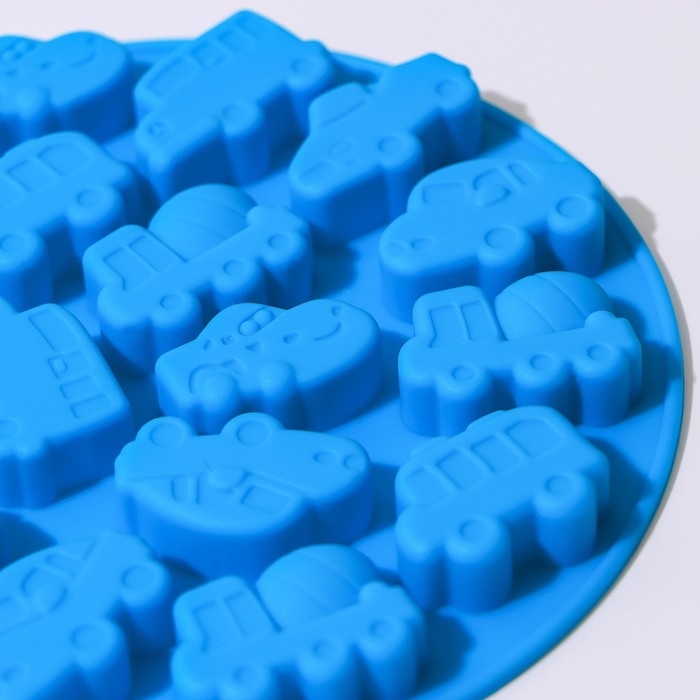 Форма для мармелада Доляна «Автомобили», силикон, 22×10×1,8 см, 20 ячеек (3,2×1,8 см) цвет МИКС