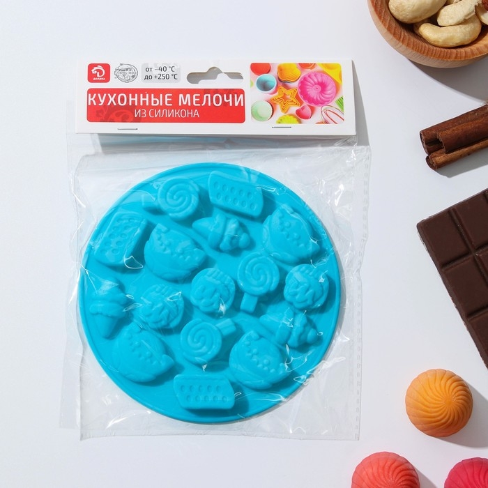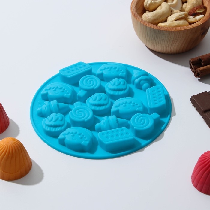 Форма для мармелада Доляна «Сладости», силикон, d=12 см, 16 ячеек, цвет МИКС