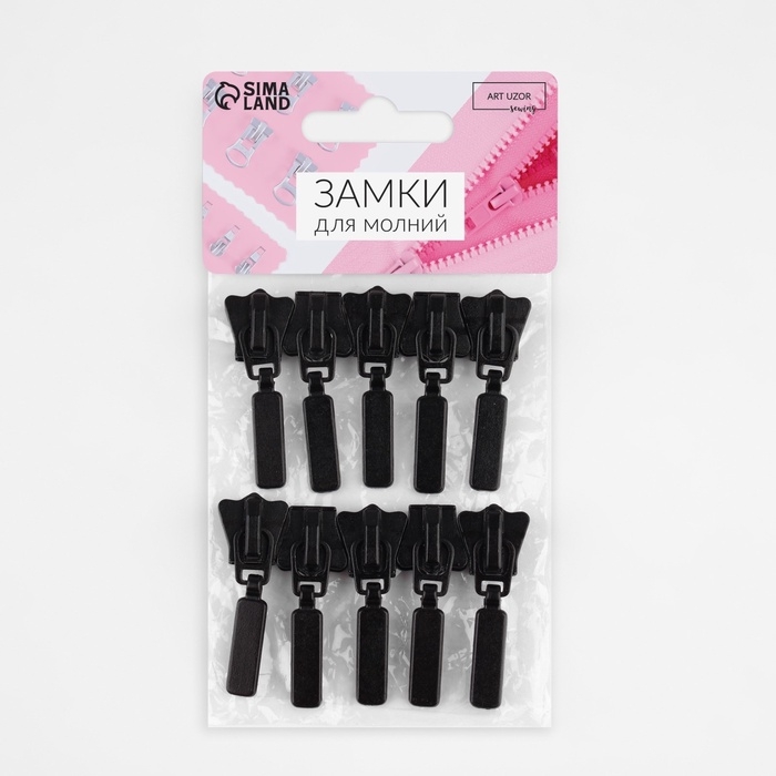 Бегунок автоматический для молнии «Трактор», №5, 10 шт, цвет чёрный