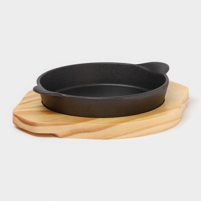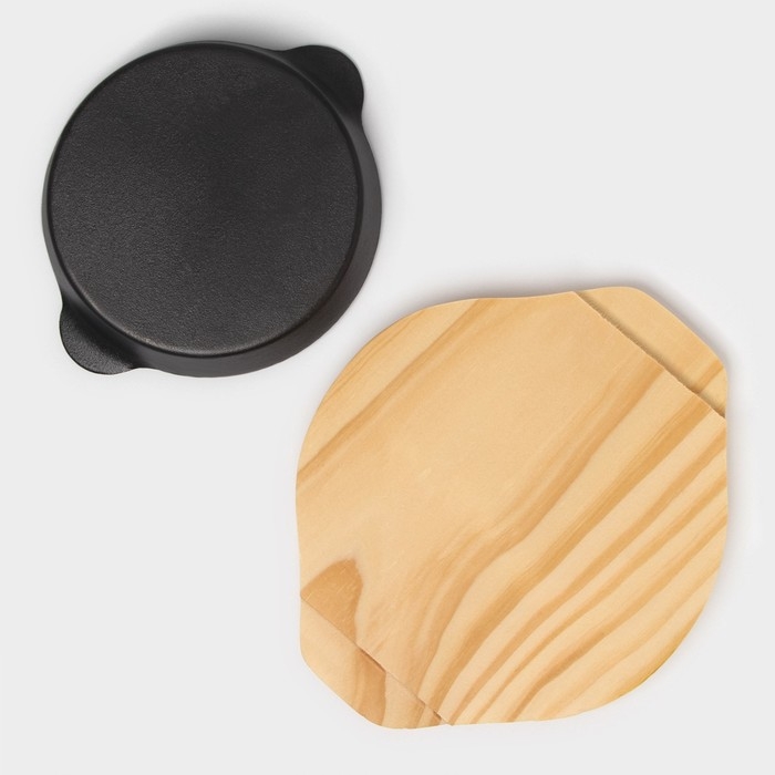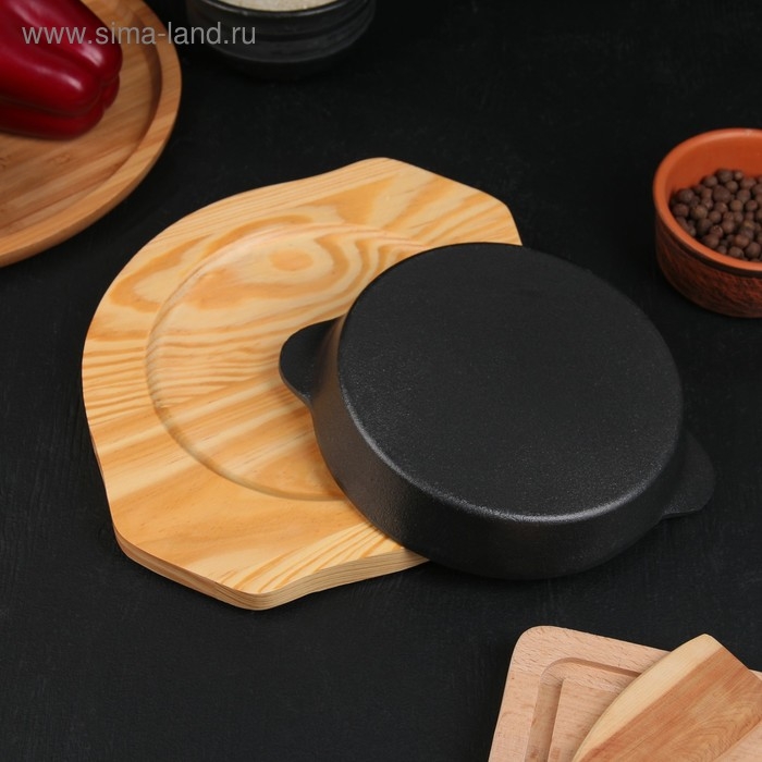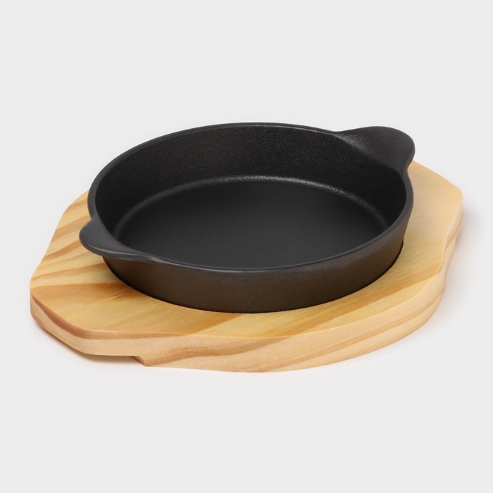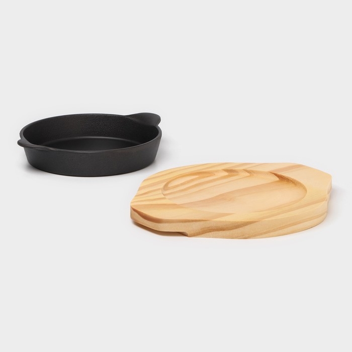 Сковорода «Круг с ручками», d=15,5 см, на деревянной подставке