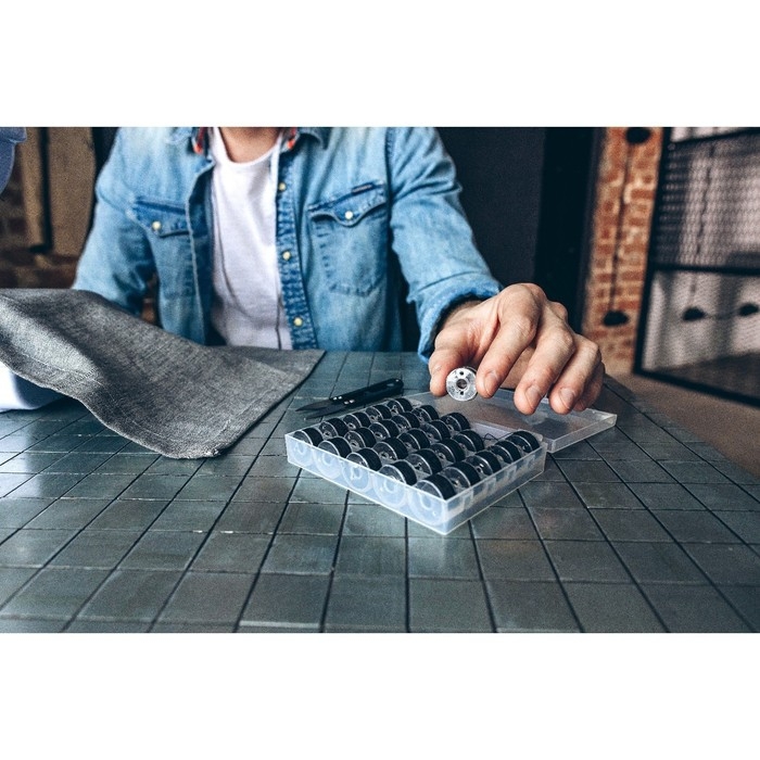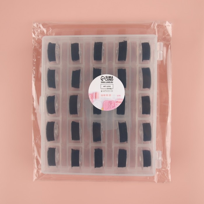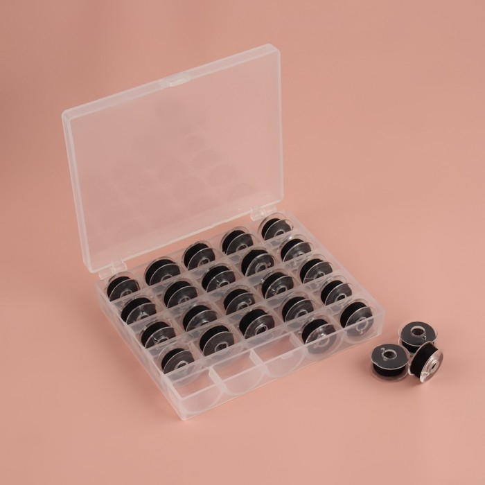 Набор шпулек с нитками, в органайзере, d = 20 мм, 25 шт, цвет чёрный