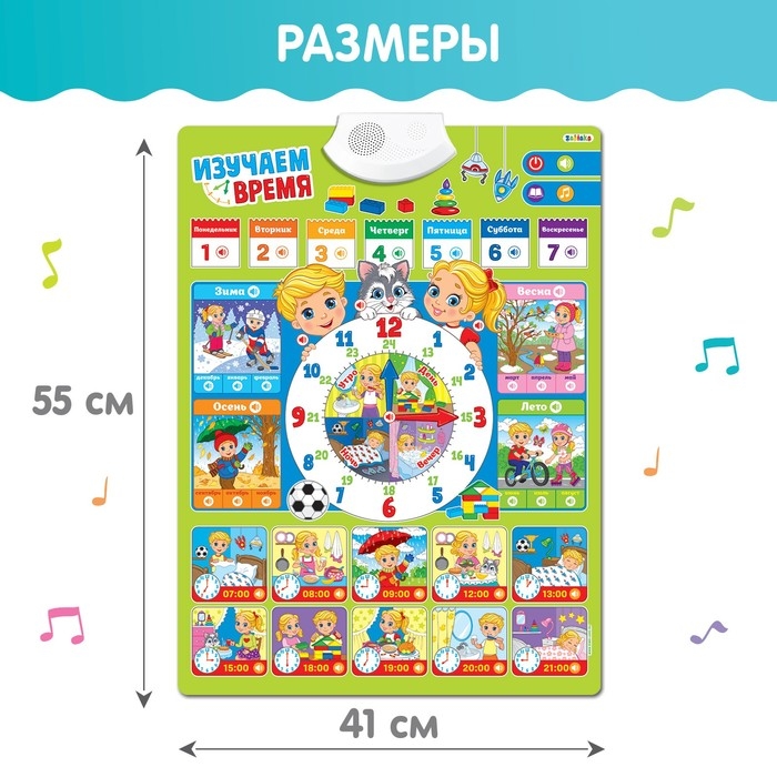 Обучающий плакат «Изучаем время», звуковые эффекты, в пакете
