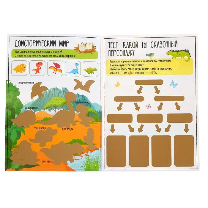 Активити-книга для детей содержит увлекательные задания и волшебные ответы-картинки, спрятанные под скретч-слоем. Сотрите его монеткой и узнайте, что внутри!