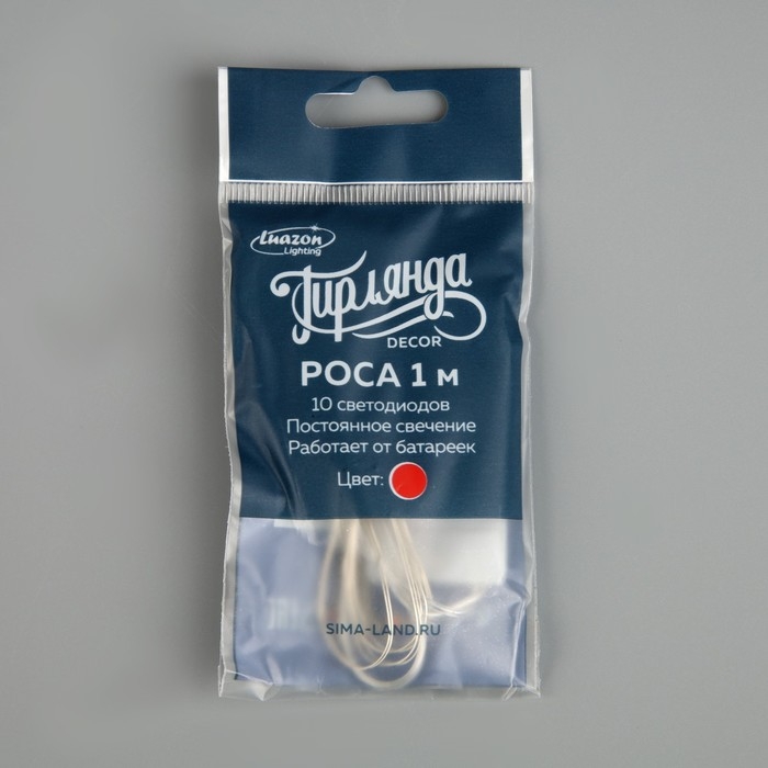 Гирлянда «Нить» 1 м роса, IP20, серебристая нить, 10 LED, батарейки CR2032х2 (в комплекте), свечение красное