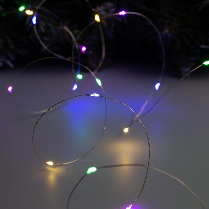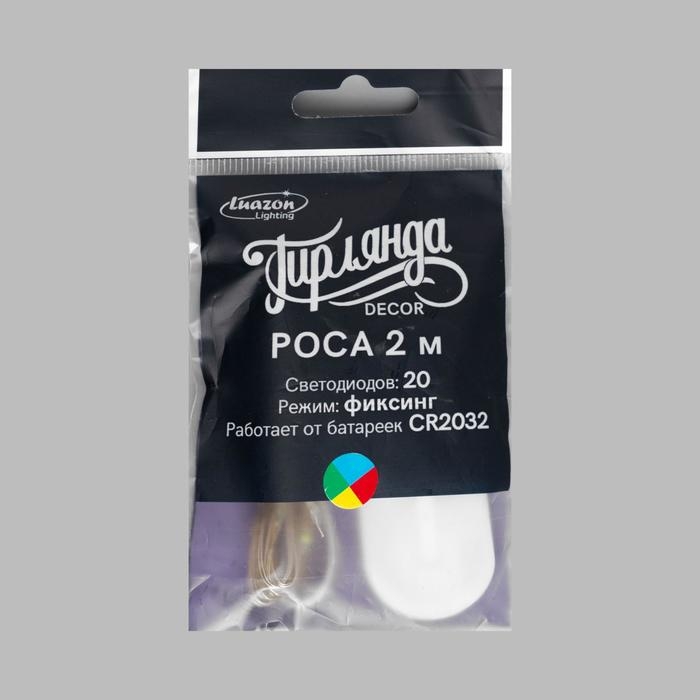 Гирлянда «Нить» 2 м роса, IP20, серебристая нить, 20 LED, батарейки CR2032х2 (в комплекте), свечение мульти