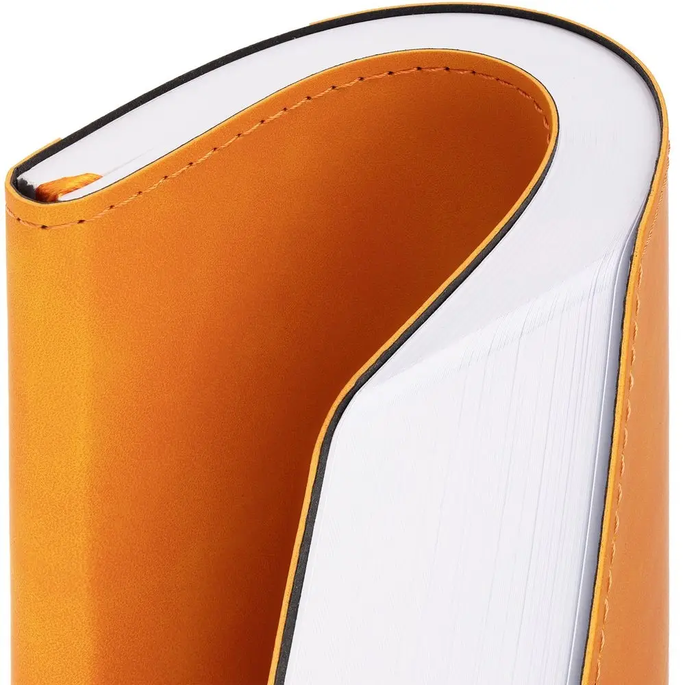 Ежедневник с гибкой обложкой, выполнен из материала Nubuck Touch, оранжевый OO, дополнен ляссе в цвет обложки.