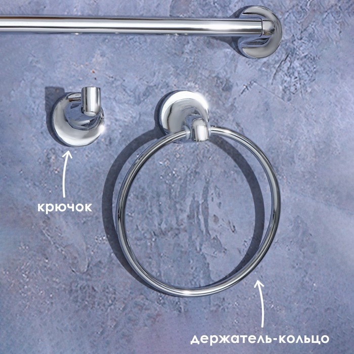 Набор аксессуаров для ванной поможет организовать пространство в одном стиле. У каждой вещи будет своё место. Изделия выполнены из качественных материалов, что гарантирует долговечность. Высококачественное хромированное защитит изделия от ржавчины.