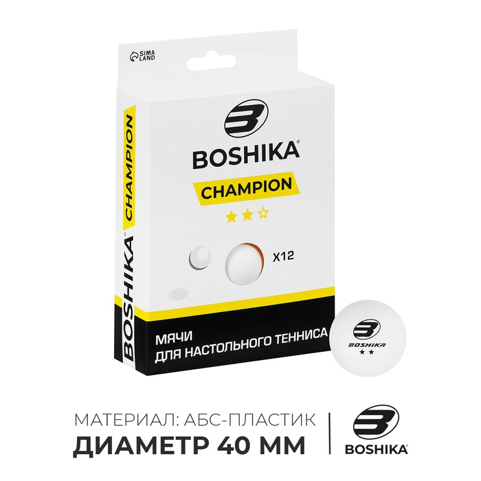 Мяч для настольного тенниса BOSHIKA Premier 3***, набор 6 шт., ABS, цвет белый