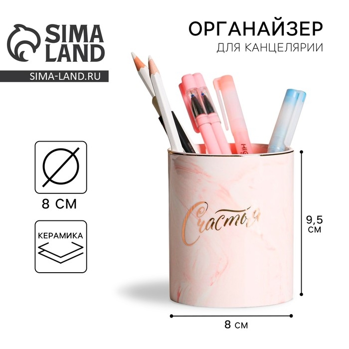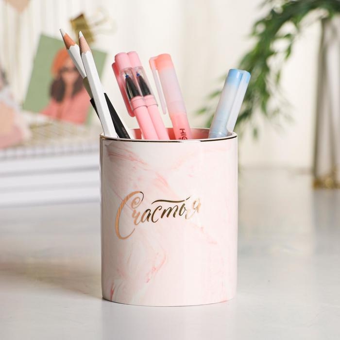 Органайзер для канцелярии, керамический, «Счастья», розовый