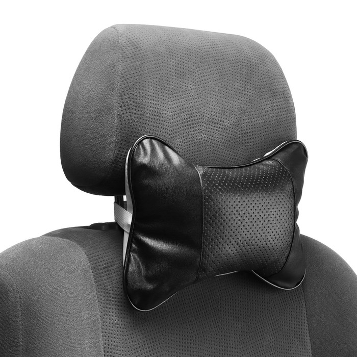 Подушка автомобильная косточка, на подголовник, экокожа, 18×25 см, чёрный