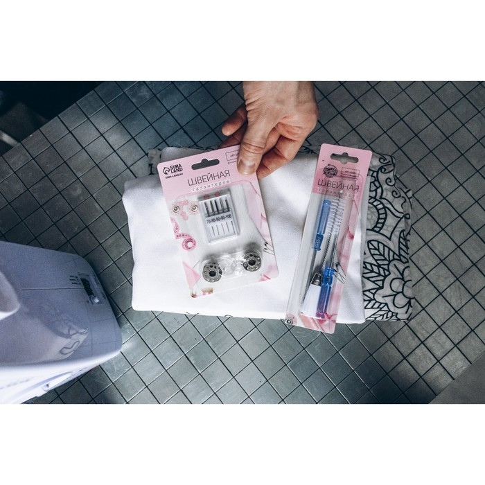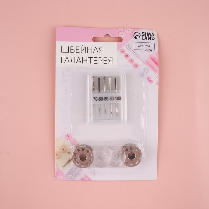 Набор для бытовых швейных машин: 4 шпульки, 5 игл 70, 80, 90, 100
