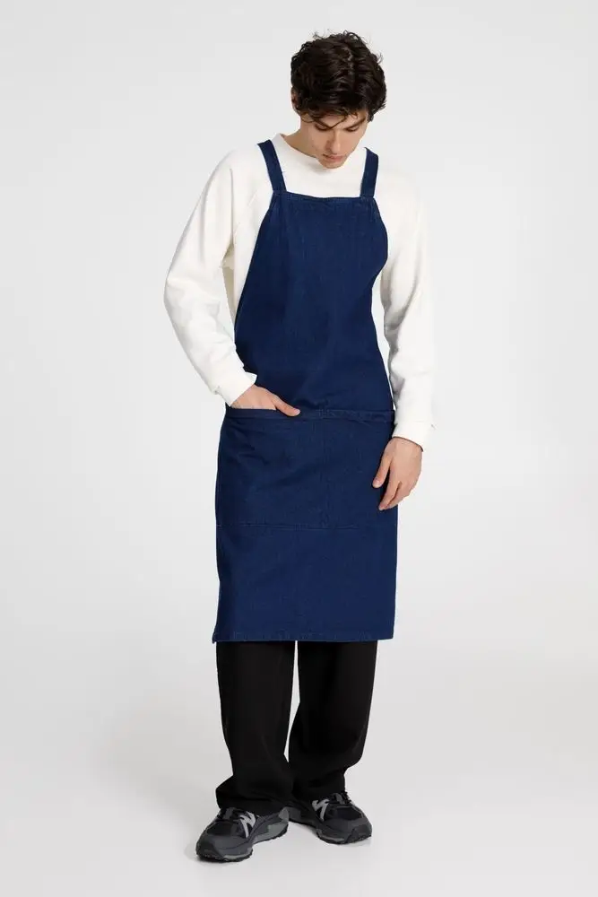 Стильный фартук из денима разработан в рамках единой коллекции одежды и аксессуаров и легко комбинируется с ее элементами. Специально спроектированные лекала и технологии пошива открывают простор для любых вариантов кастомизации и нанесения изображений. На видимой части изделий нет лейблов с айдентикой бренда, а название бренда с уходника легко удалить.