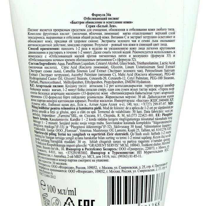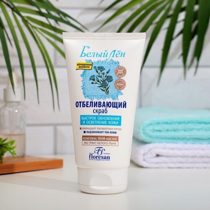 Отбеливающий скраб Floresan, "Белый Лен", быстрое обновление и осветление кожи, 100 мл