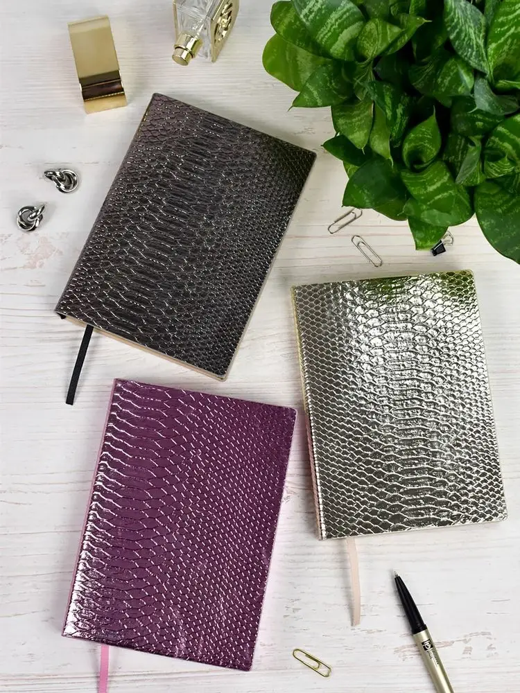 2025 год вдохнет новую жизнь в знаменитый змеиный принт, а коллекция ежедневников Anaconda напомнит о его невероятной притягательности и вне модных показов. Заманчивые переливы и имитация змеиной кожи: Anaconda непременно вызывает желание прикоснуться к рельефной обложке, а еще — добавить немного змеиной мудрости и нотку легкой загадочности в офисные дела.