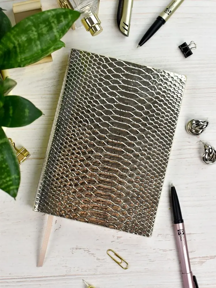 2025 год вдохнет новую жизнь в знаменитый змеиный принт, а коллекция ежедневников Anaconda напомнит о его невероятной притягательности и вне модных показов. Заманчивые переливы и имитация змеиной кожи: Anaconda непременно вызывает желание прикоснуться к рельефной обложке, а еще — добавить немного змеиной мудрости и нотку легкой загадочности в офисные дела.