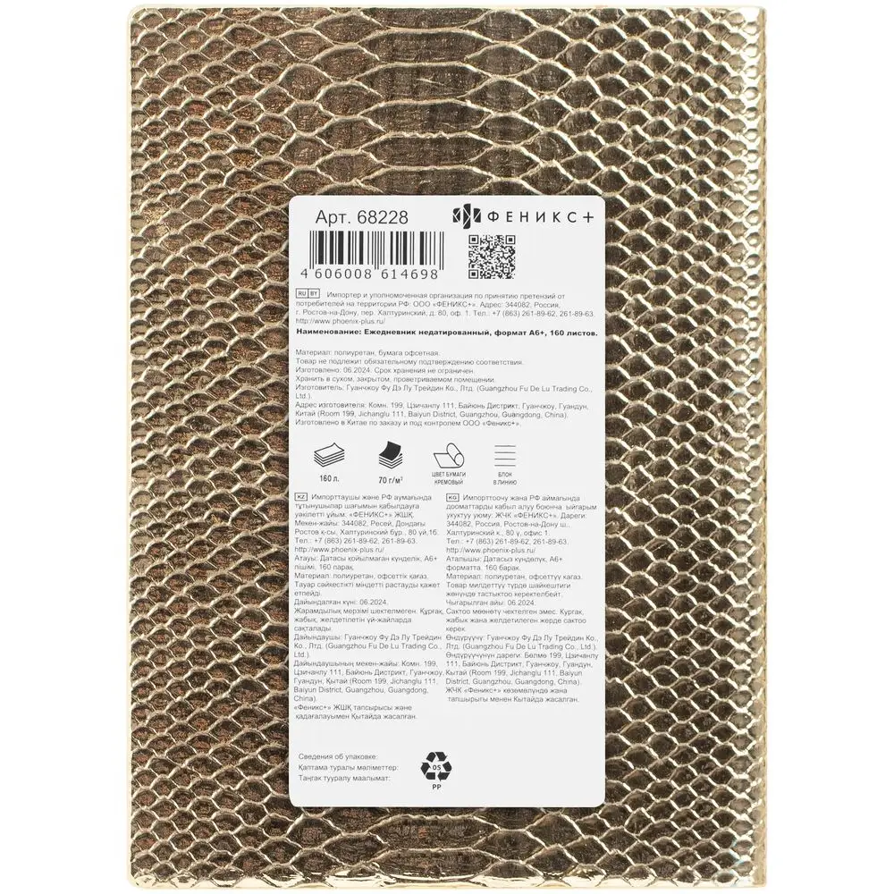 Ежедневник Anaconda, недатированный, золотистый