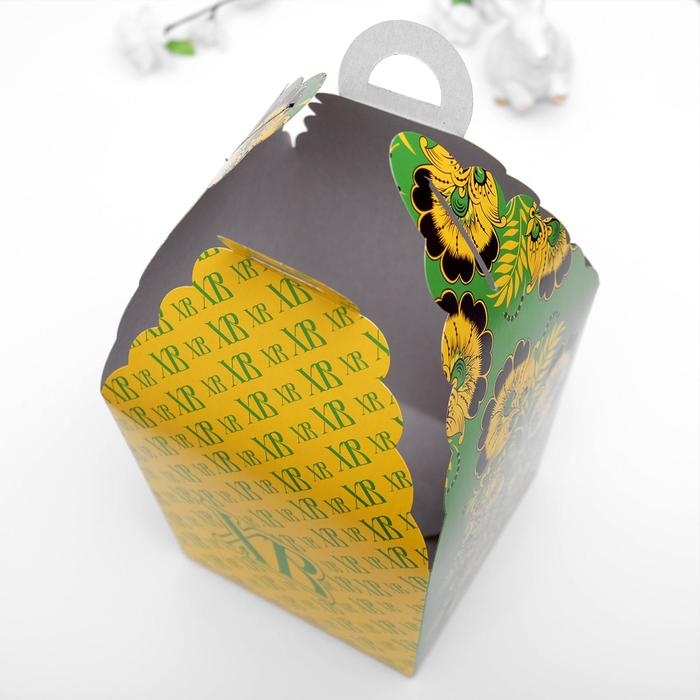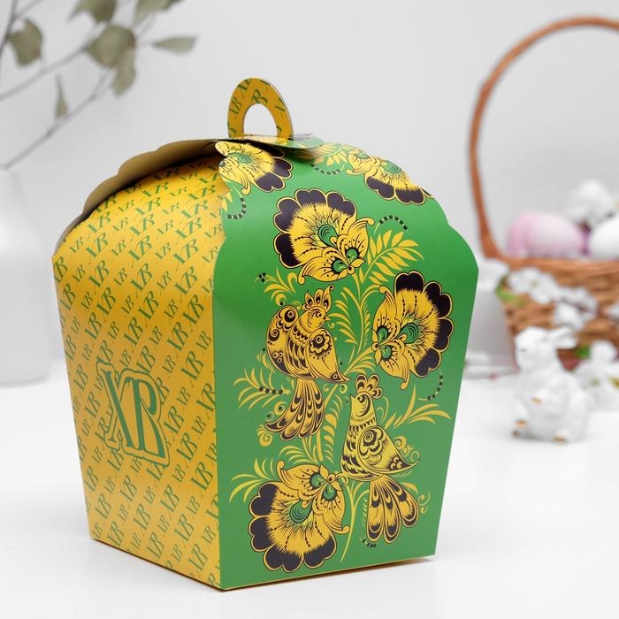 Пасхальная коробочка "ХВ", зеленая хохлома, 17 х 17 х 26 см