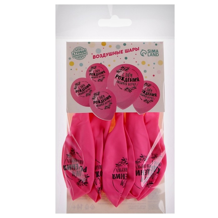 Воздушный шар латексный 12" "С днем рождения, любимая внучка", 5 шт.
