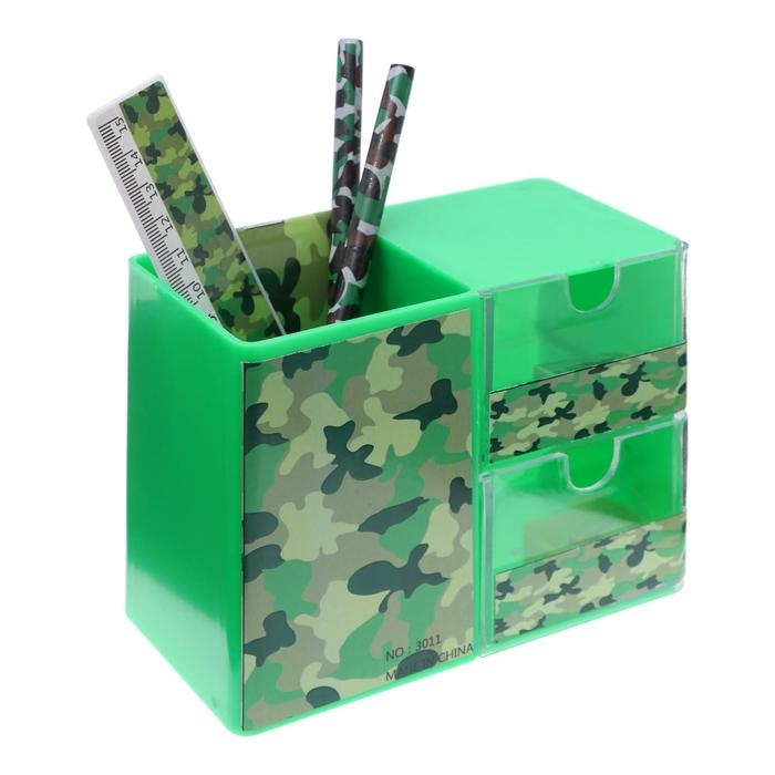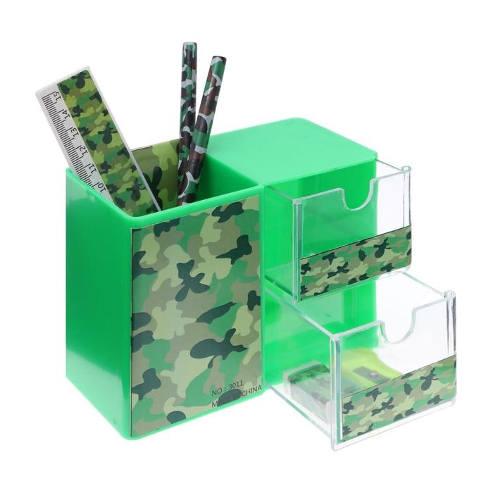 Набор настольный детский "Милитари" (подставка+2 карандаша+линейка+точилка+ластик+блокнот 8 листов)