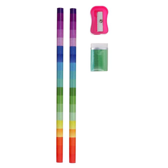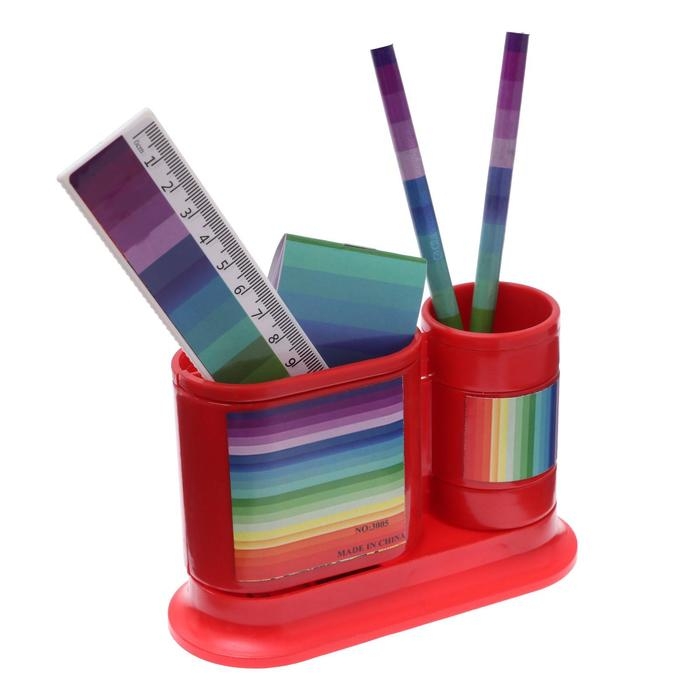 Набор настольный детский "Радуга" (подставка+2 карандаша+линейка+точилка+ластик+блокнот 8 листов)