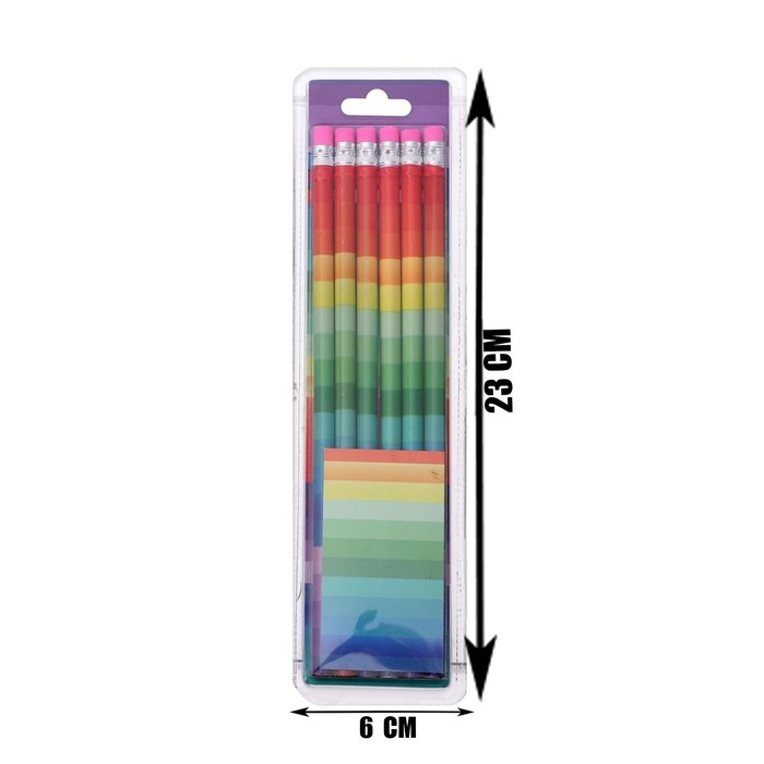 Набор карандашей 6 штук чёрнографитных с ластиком "Радуга", твёрдость НВ