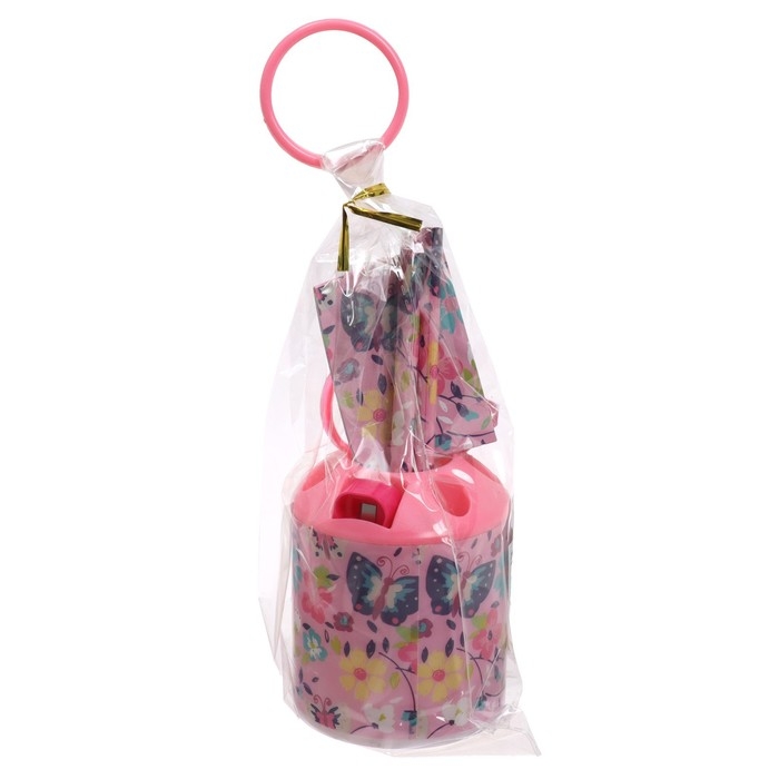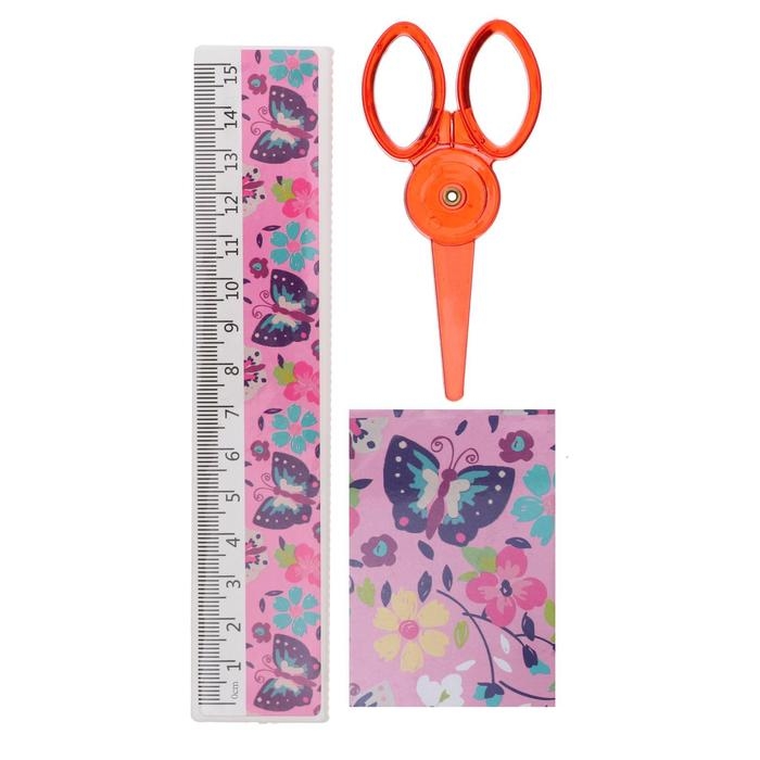 Набор настольный детский "Бабочки" (подставка+2 карандаша+линейка+точилка+ластик+блокнот 8 листов+ножницы)