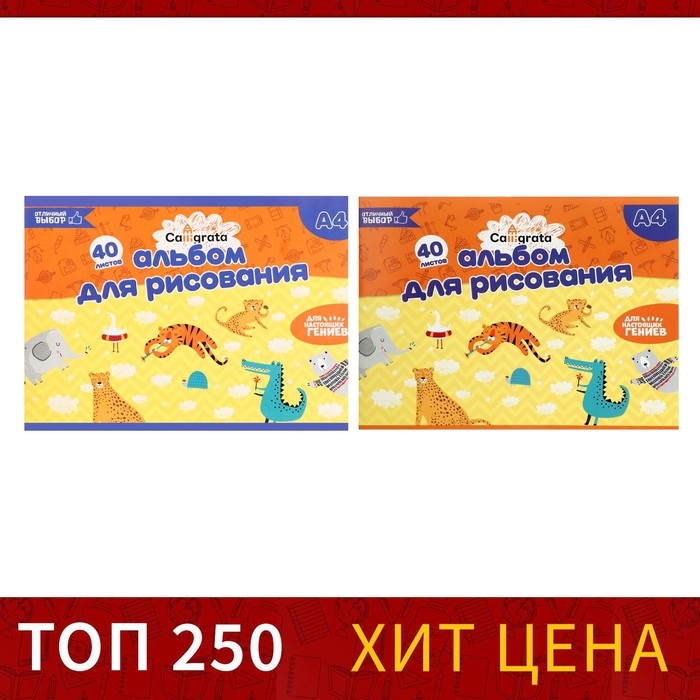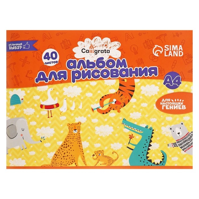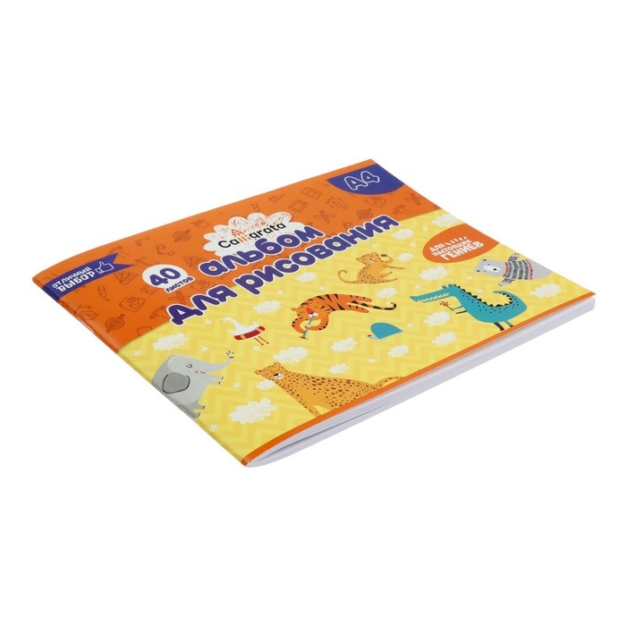 Альбом для рисования А4, 40 листов на скрепке Calligrata, обложка мелованный картон, внутренний блок офсет 100 г/м², МИКС