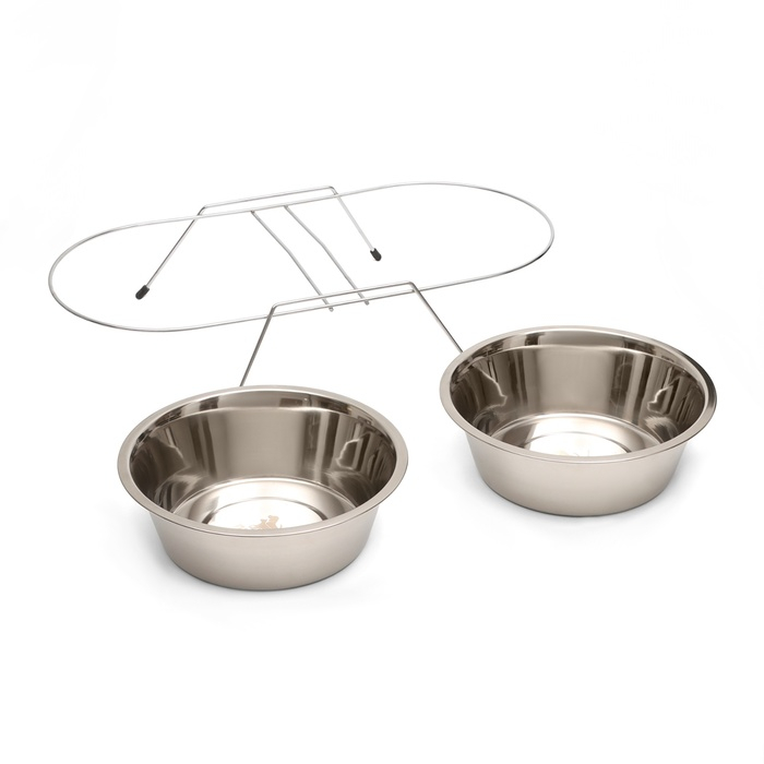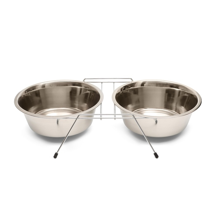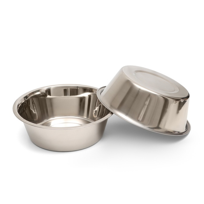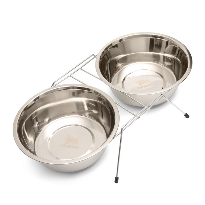 Набор из двух мисок изготовленных из качественной нержавеющей стали, которые предназначены для кормления домашних животных.