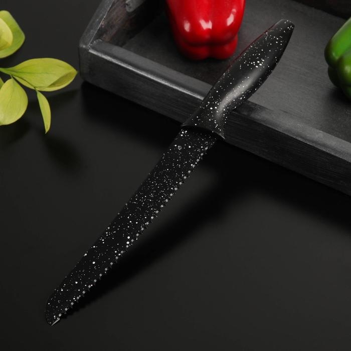 Нож с антиналипающим покрытием Доляна «Зефир», хлебный, лезвие 20 см, цвет чёрный
