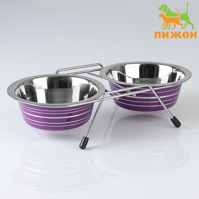 Набор из двух мисок изготовленных из качественной нержавеющей стали, которые предназначены для кормления домашних животных.