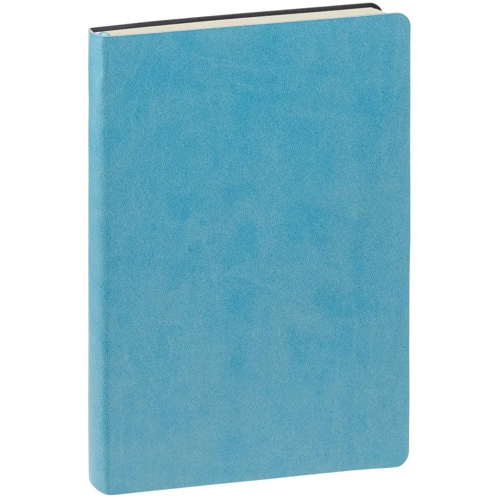 Ежедневник с гибкой обложкой, выполнен из материала Latte, голубой, дополнен ляссе в цвет обложки.