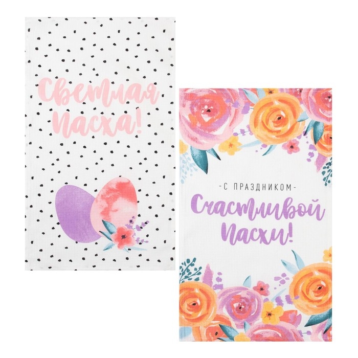 Набор кухонных полотенец Доляна Пасхальное чудо 35х60см-2 шт, 100% хл, вафля 160 г/м2