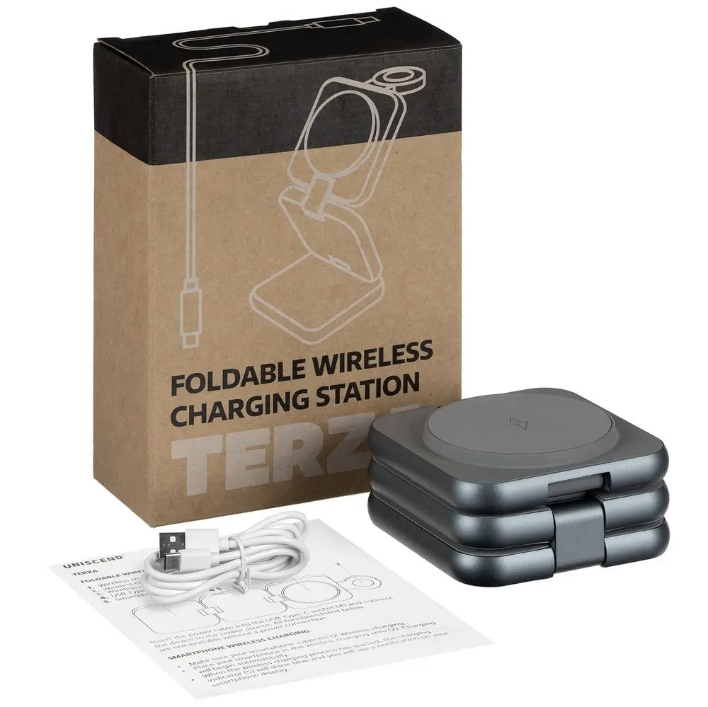 Складная станция беспроводной зарядки Terza, серебристая