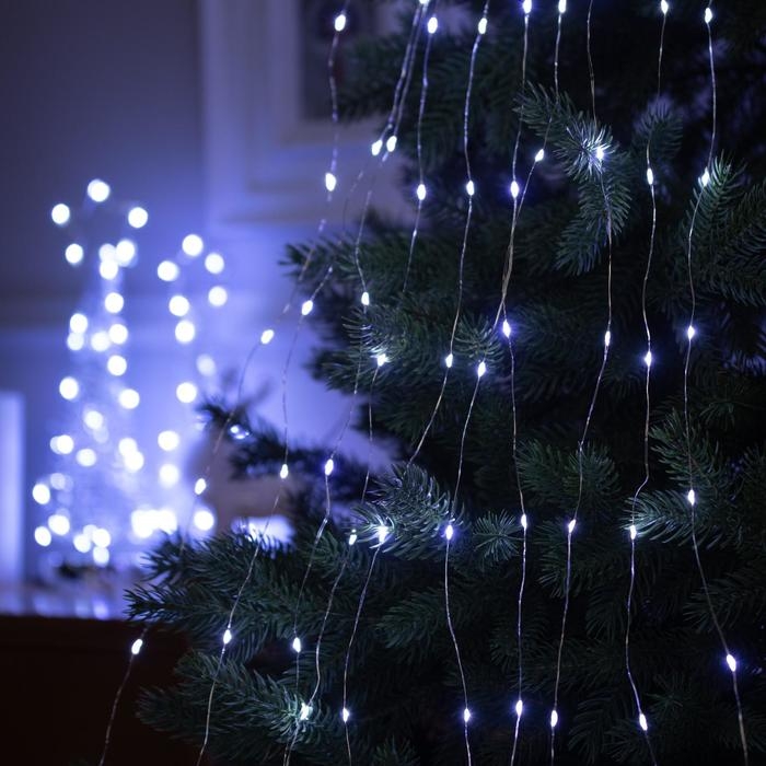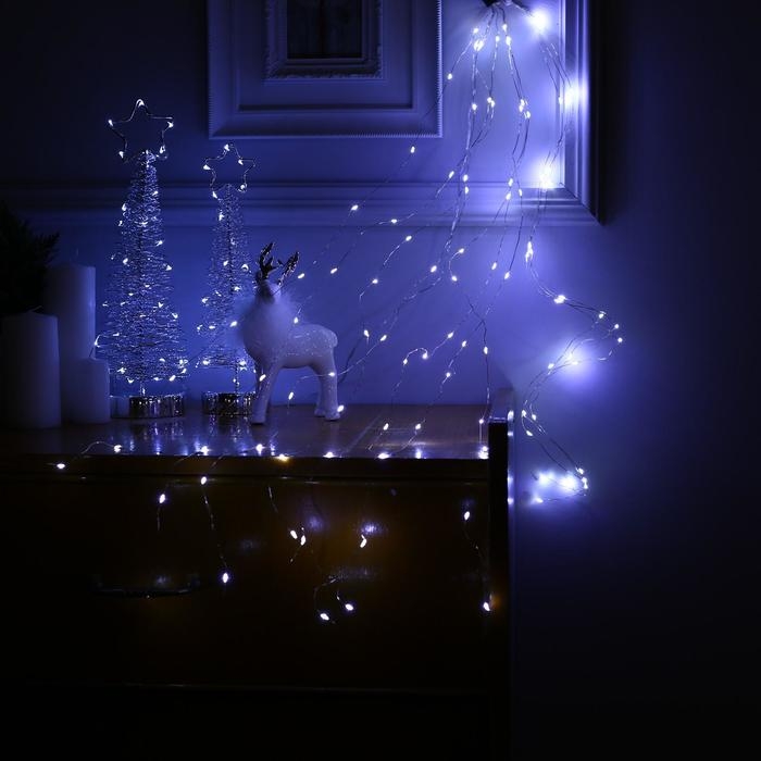 Гирлянда «Конский хвост» 10 нитей по 1 м, IP20, серебристая нить, 100 LED, 2 режима, батарейки AAх3 (нет в комплекте), свечение белое