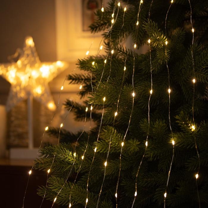 Гирлянда «Занавес» 2.5 × 0.65 м с насадками «Капли», IP20, прозрачная нить, 50 LED, свечение тёплое белое, 8 режимов, 220 В