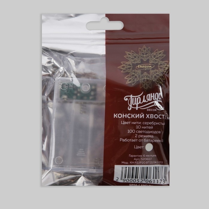 Гирлянда «Конский хвост» 10 нитей по 1 м, IP20, серебристая нить, 100 LED, 2 режима, батарейки AAх3 (нет в комплекте), свечение тёплое белое