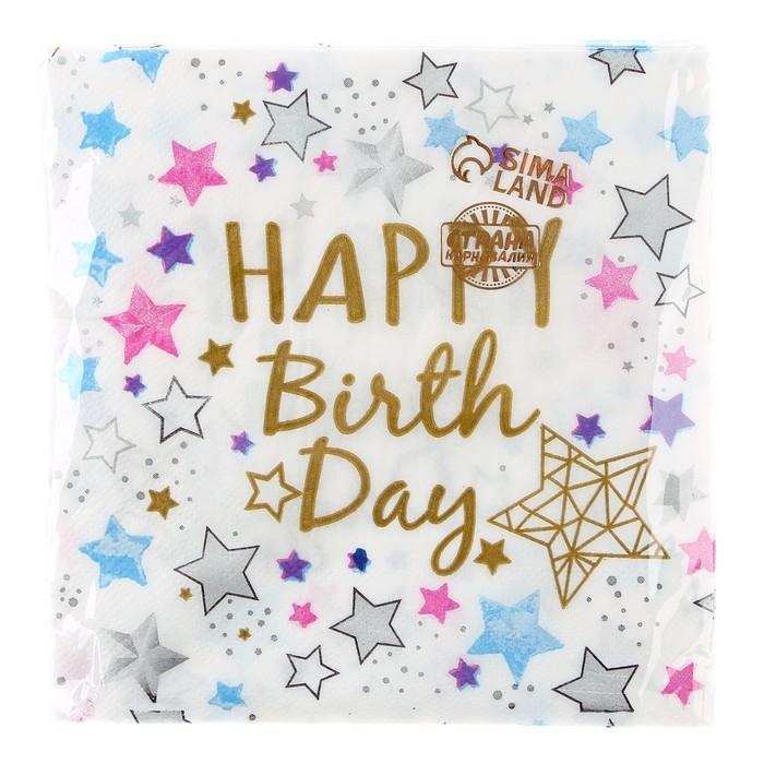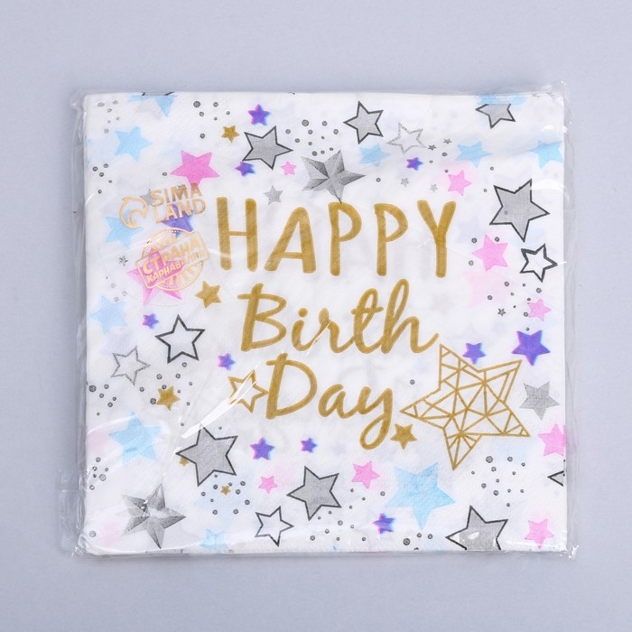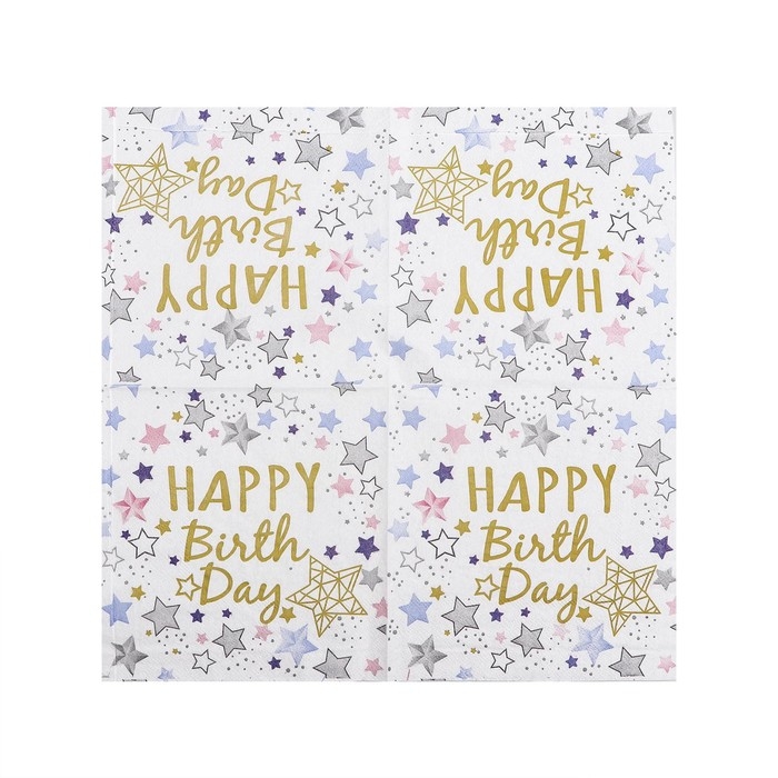 Салфетки бумажные «С днём рождения», 33х33 см, набор 20 шт., цвет белый