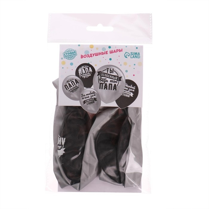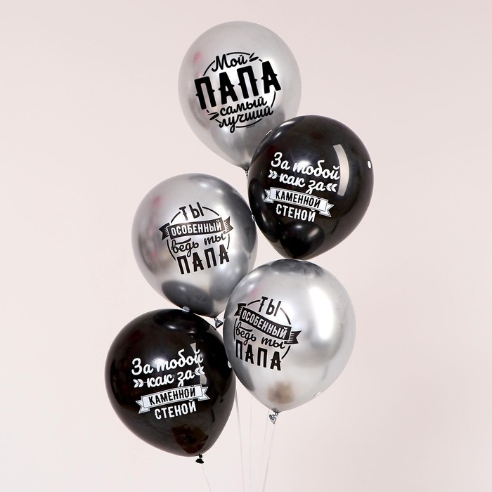 Воздушный шар латексный 12" "Любимому папе", хром, 5 шт.