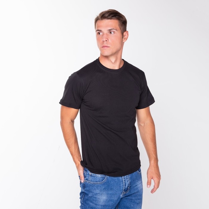 Футболка мужская однотонная, цвет чёрный, размер 48